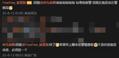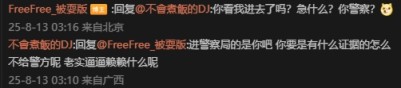 FreeFree_被耍版”回复:“你看我进去了吗?急什么?你警察?”