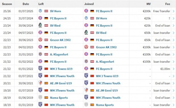 8月12日讯 据德转显示,刘邵子洋自由转会加盟拜仁二队。