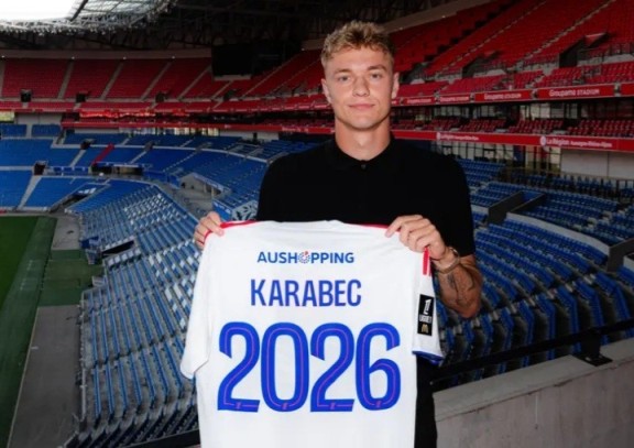 里昂俱乐部在官网发布公告称:“亚当-卡拉贝克租借至本赛季结束,里昂拥有选择买断权。里昂俱乐部宣布,布拉格斯巴达球员亚当-卡拉贝克加盟球队,我们以30万欧元租借球员至2026年6月30日。同时里昂可以选择买断球员,买断费350万欧元,外加最高可达80万欧元的奖金,此外布拉格斯巴达还能获得球员未来转会收益的15%分成。”
