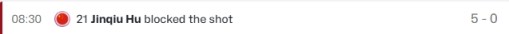 在中国男篮小组赛收官战对阵约旦的比赛中,FIBA官方直播曾记载胡金秋在首节8分30秒时送出1次盖帽。