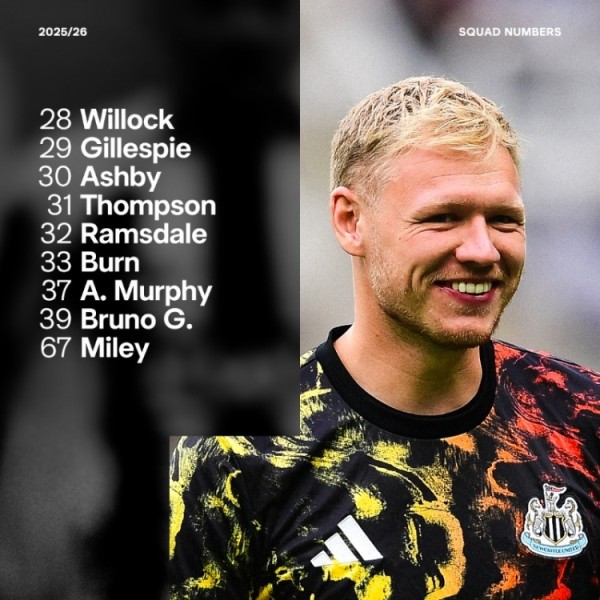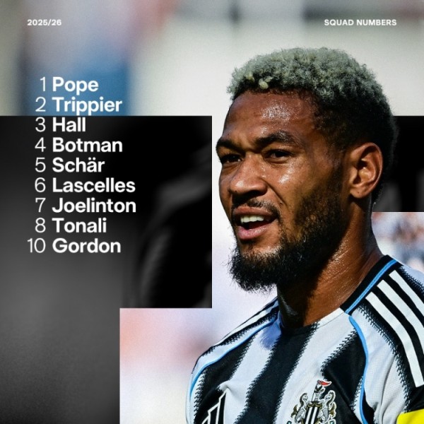 8月12日讯 纽卡官方公布新赛季球员号码,伊萨克14号,托纳利8号、安东尼-戈登10号,乔林顿7号,吉马良斯39号,新援拉姆斯代尔32号,伊兰加20号。