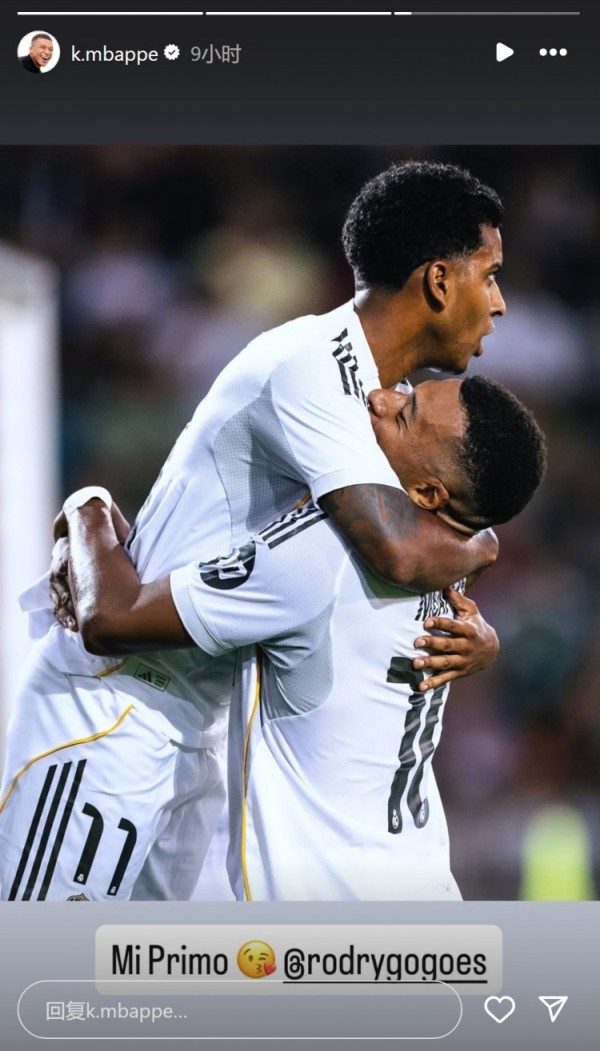 此役姆巴佩2射1传,助攻罗德里戈破门。姆巴佩在社交媒体上晒出庆祝时抱起罗德里戈的照片,配文:“我的兄弟。”