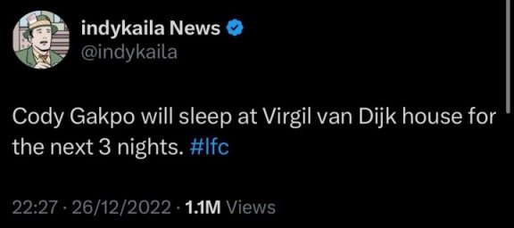 评论区有球迷“挖坟”绿帽哥此前的报道,在2022年冬窗加克波即将加盟利物浦时,他也曾爆料过荷兰人将在老乡范迪克的家中借住三天。