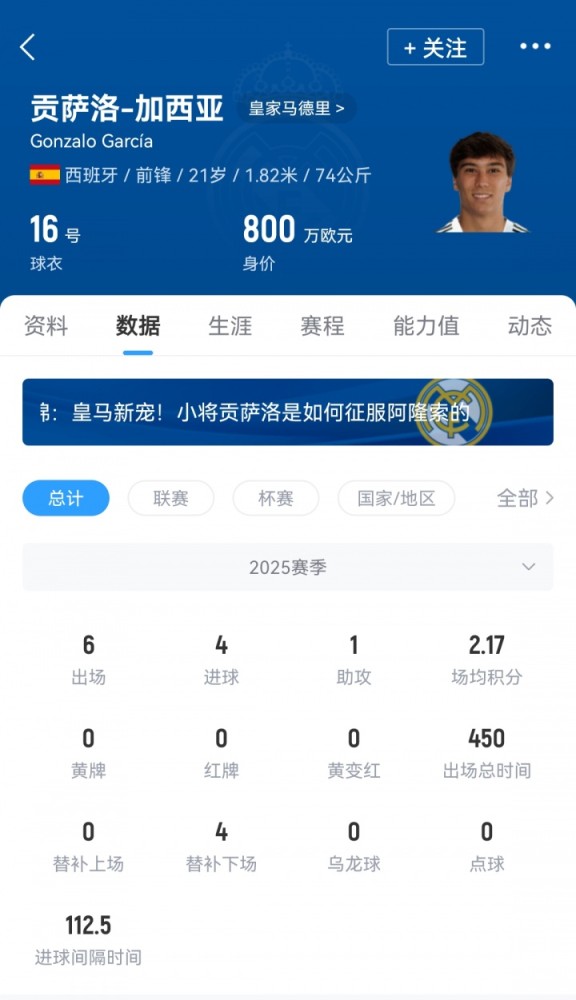 一名已经令人印象深刻的球员是19岁的冈萨洛·加西亚。上赛季为皇家马德里卡斯蒂利亚打进25球后,他在今年夏天的世俱杯上大放异彩,以四球并列最佳射手。去年马德里缺乏真正的中锋,加西亚可能成为那个核心点。