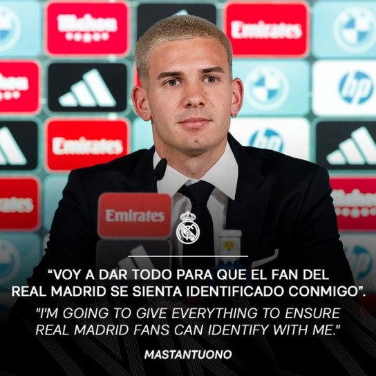 马斯坦托诺:“我以平和的心态面对,不应该说谎,我就是这样做的,也会继续保持。我理解作为皇马球员会受到的关注,但我来自河床,这也是这份美好工作的一部分。我会保持冷静,真诚地面对媒体。”