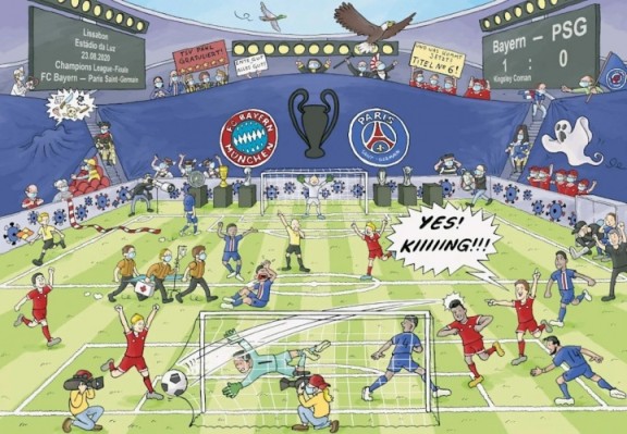2020年欧冠决赛拜仁1-0巴黎的比赛也被收录在书中。这幅图中的彩蛋就请大家自行寻找吧......